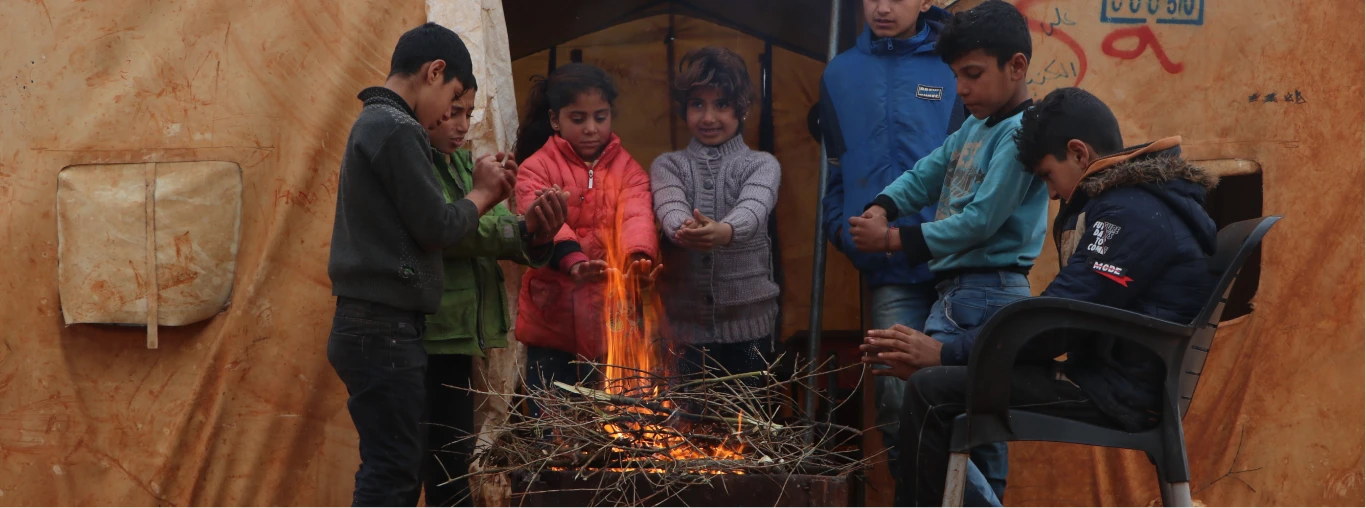 With every winter, the cold and frost claim the lives of children in camps. Fierce winds uproot their tents, and floods submerge them